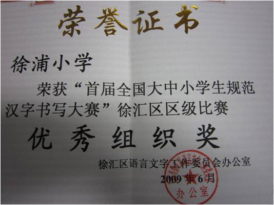 “首届全国大中小学生规范汉字书写大赛”徐汇区区级比赛优秀组织奖