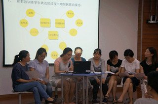 首先上台发言的是语文组,分为两批为大家做汇报。低年段教研组展示了基于课标的评价方案,充分体现了教、学、评的一致性。高年级则主要侧重于语文课堂练习设计的有效性,他们提出了设计有效练习必须要“依托文本,以文本语文为基础,从学习的实际与需要出发,适时、精心地设计。”