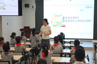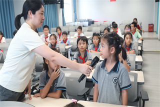 讲座一开始,蒋老师就用两个充满童趣的问题拉近了与同学们的距离:“大家平时喜欢收到礼物吗?你印象最深的礼物是什么呀?”孩子们纷纷举手分享,有的说收到过心爱的玩具,有的提到了爸爸妈妈亲手做的蛋糕。在热烈的互动后,蒋老师用生动的语言讲述了绘本故事《赵鑫奇遇记》,赵鑫原本是一个胆小自卑的小男孩,他在寻宝过程中经历了风暴的考验,勇敢地救起了落水的小狗,即便受伤也咬牙坚持前行,最终发现生命的礼物其实就在寻宝的路上,是冷静、善意以及不放弃的心。同学们听得十分入神,在故事结束后,蒋老师鼓励大家分享自己收获的来自生命的礼物,以及未来希望收获的生命礼物,同学们踊跃发言,有的说收获了去深水区学游泳的勇气,有的希望未来能收获学习上更好的成绩。