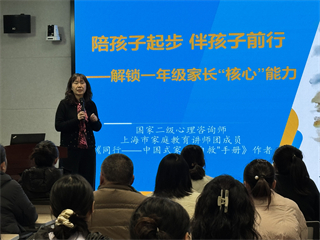12月5日晚,我校面向一年级家长,展开了家长学校第三讲。本次邀请到了国家二级心理咨询师、上海市家庭教育讲师团成员、《同行——中国式“自救”手册》作者——魏迎娣专家。本次讲座以《陪孩子起步,伴孩子前行——解锁一年级家长“核心”能力》为主题,帮助一年级家长更好地陪伴孩子适应小学生活,构建和谐的家校共育关系。