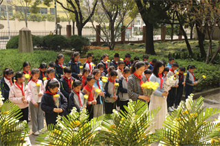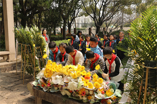 4月2日,学校党员教师、团员教师带领三、四、五年级队员代表前往邹容墓开展祭扫活动。全体人员肃立默哀,队员代表庄重献上鲜花与花篮,高举右拳重呼号,以庄严仪式缅怀少年英烈邹容,传承革命精神。