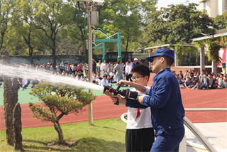 活动最后,消防车亮相校园,瞬间点燃了同学们的热情。消防指战员首先为师生详细介绍消防车的构造、救援装备与功能用途,耐心解答同学们提出的各类消防疑问。随后,激动人心的喷水演示正式开始,高压水柱腾空喷射,场面十分震撼,让师生们直观感受到消防装备的强大力量。演示结束后,在消防员的专业指导和全程保护下,个别同学们有序上前,亲手体验操控消防水枪喷水,亲身感受消防救援的乐趣与责任,在实践中进一步加深了对消防安全的认知,敬畏生命、重视安全的意识深深根植心中。
